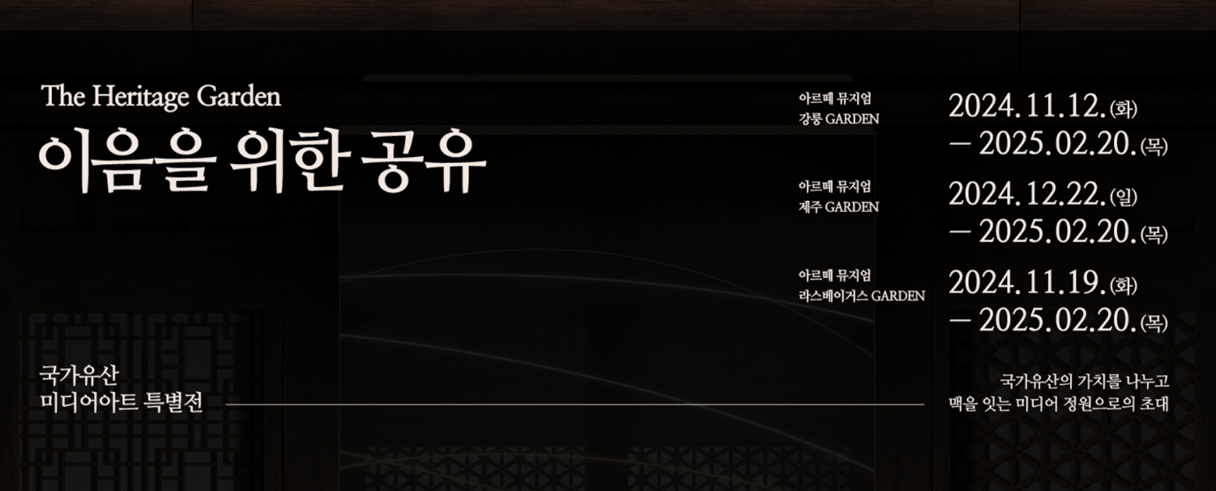 1. 전시명: 2024년 국가유산 미디어아트 전시 <더 헤리티지 가든(The Heritage Garden) - 이음을 위한 공유>