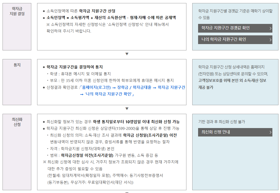 ** 국외 소득·재산 신고대상자일 경우, 상기 학자금 지원구간 산정 절차와 상이하므로 국외 소득·재산 신고제 안내 메뉴를 참고해주시기 바랍니다.
