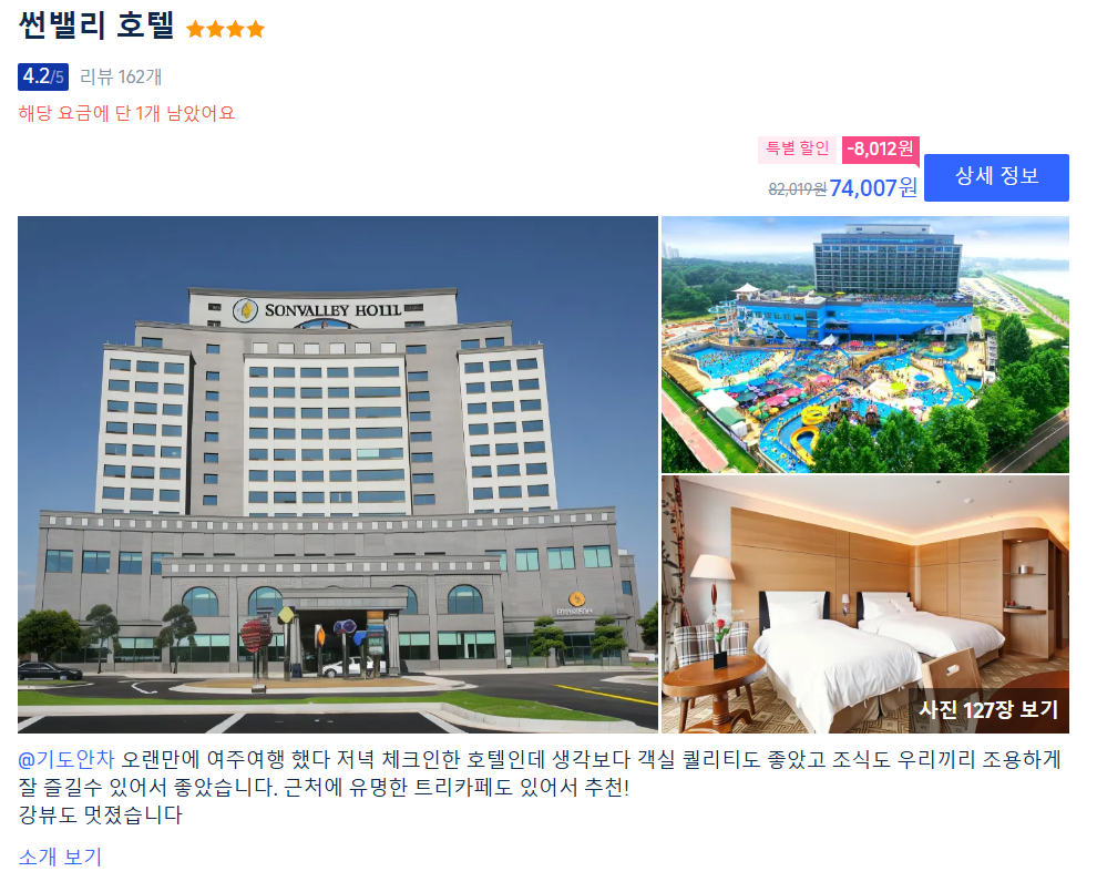 ⬇️여주 호텔, 썬밸리 호텔 예약하러 가기⬇️