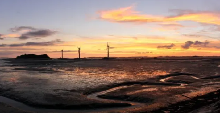 든 바다와 갯벌, 그리고 바람에 돌아가는 풍력발전기를 배경으로 새해 일출을 감상해 보시길 바랍니다☀️