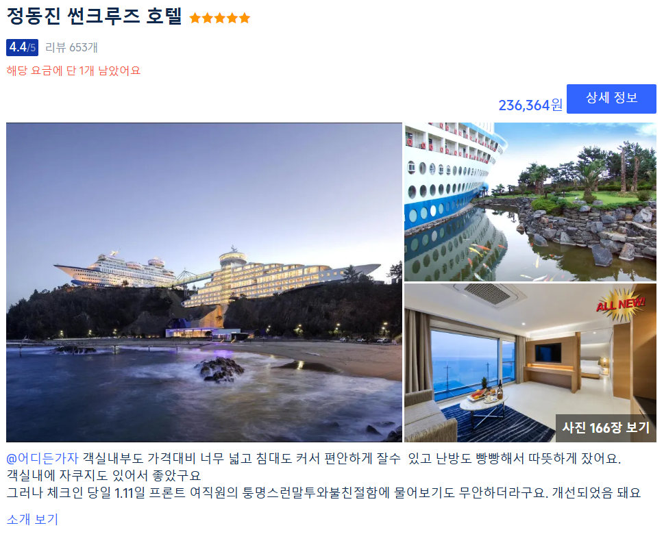 ⬇️객실에서 정동진 일출 감상할 수 있는 정동진 썬크루즈 예약하기⬇️