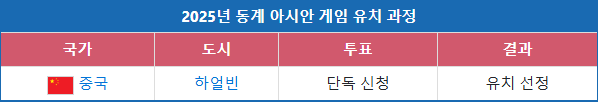 2025년 중국 하얼빈 일대에서 개최 예정인 동계 아시안 게임.