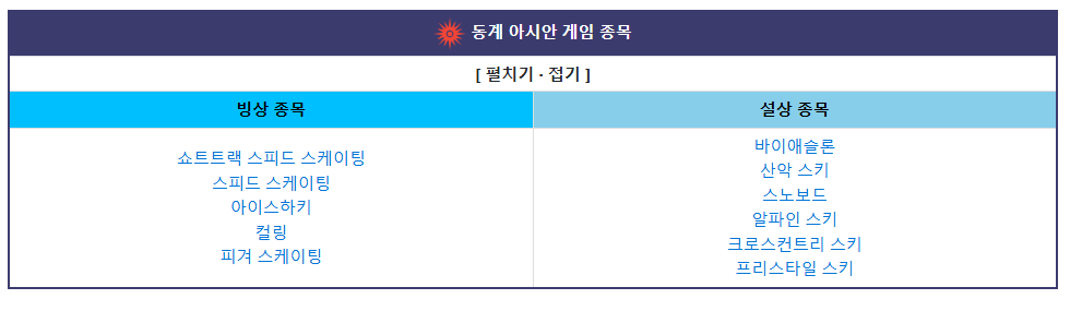 2017 삿포로 동계 아시안 게임과 달리 스키점프가 빠졌고 2026 밀라노·코르티나담페초 동계올림픽에 추가된 산악 스키가 이 대회에도 추가되었다.