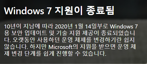 윈도우 7은 10년이 지났으므로 2020년 1월에