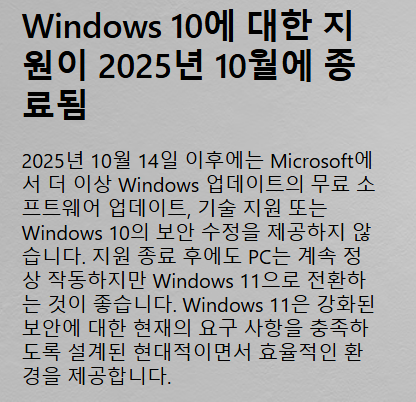 윈도우 10은 2025년 10월 14일 이후에는 마이크로소프트에서