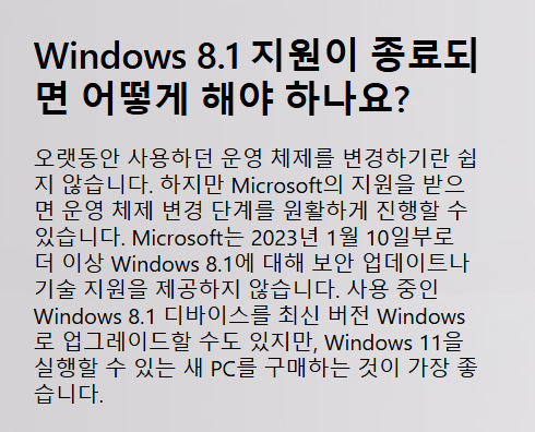 더이상 윈도우 8.1에 대한 보안 업데이트나 기술지원을 제공하지 않습니다.